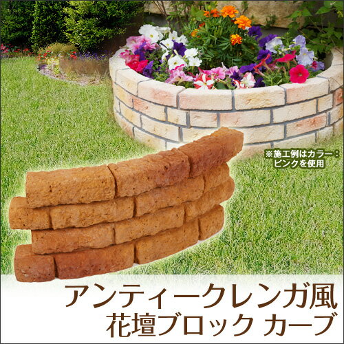 イギリス風 ガーデニング アンティークレンガ調 花壇材 ブロック カーブ (W56×H23×厚6cm) ブロック 仕切り 土留め 囲い 連杭 レンガ 置くだけ