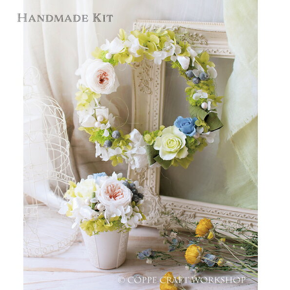 【送料無料】手作りリース 手作りキット ハンドメイド ハンドメイドキット プリザーブドフラワー プリザ オリジナル 花 枯れない花 玄関飾り お部屋飾り インテリア 装飾 モダン ナチュラル ホワイト かわいい おしゃれ