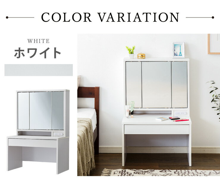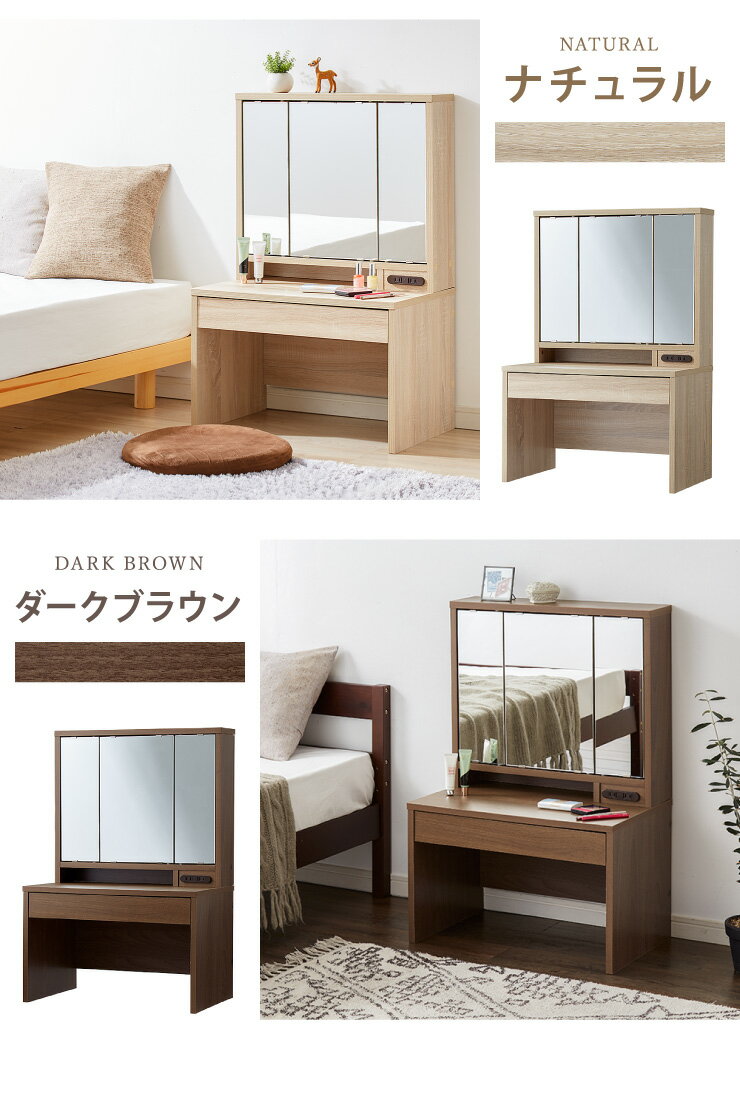 ドレッサー デスク ロータイプ 三面鏡 収納 引き出し 2口 コンセント 幅60 高さ90 ミラー 3面鏡 鏡台 メイク台 化粧台 おしゃれ【送料無料】